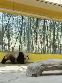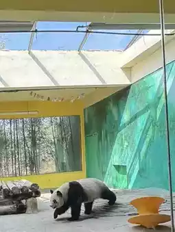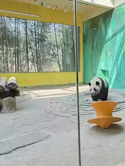 After our meal, we headed to the highlight of the zoo—the panda enclosure. This is the most popular spot in the entire zoo. Through the glass window, a chubby panda was pacing back and forth, looking incredibly adorable. Dad immediately squatted down and pointed his phone at the window to take a picture. My brother and sister glued themselves to the glass, watching intently. Suddenly, the panda sat down and nibbled on bamboo, its mouth opening and closing, dropping crumbs as it ate. My brother, mesmerized, remarked, "It's more focused on eating bamboo than I am on eating."