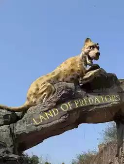 Next we arrived at the "Wild Animal Area." The entrance was a large archway with a statue of a cheetah about to pounce, flanked by statues of tigers and lions. The children posed for photos at the entrance. The younger brother gave a "V" sign, while the older sister deliberately put on a "I'm not afraid" look. It was a perfect place for photos, with a spectacular backdrop and the sun shining brightly. Every photo looked like a postcard.
