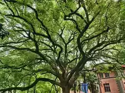 A perfect blend of red brick buildings and towering ancient trees, full of academic atmosphere