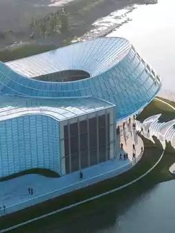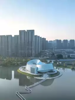 The Yohoo Museum is an impressive modern museum built on an artificial island in Liangzhu Yohoo Park, Hangzhou. The building is designed in the shape of two interwoven rings, symbolizing jade — an ancient emblem of purity and harmony in Chinese culture.