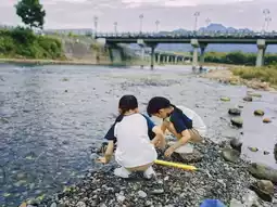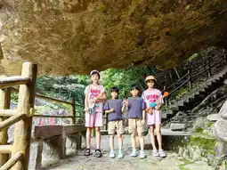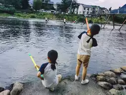Our guesthouse is located deep in the Longjing Line of Longgang Town, right at the entrance of Zhejiang West Dalong Bay Scenic Area! After breakfast, we followed the mountain road in the scenic area and stopped at a clear pool. The stream water was clear and cool, with small fish swimming by... Soaking our feet in the water was refreshing, instantly cooling off the summer heat. But because the rocks were slippery and dangerous, we didn’t let the kids move around much; they just sat on the stones playing with water guns, while the three dads happily caught fish in the water...
