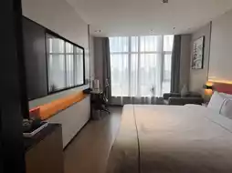 The hotel hides luxury in the details: floor-to-ceiling windows in guest rooms bring daylight and street views indoors; custom mattresses paired with high-thread-count cotton bedding ensure a restful night to shed travel fatigue; by the floor-to-ceiling windows of the executive lounge, you can enjoy freshly brewed coffee with Hangzhou-style tea snacks in the morning, and a special cocktail while overlooking the city lights at dusk. For those who prefer tranquility, the rooftop terrace is a private viewing platform to cool off and stargaze on summer nights or bask in the autumn sun and clouds, enjoying undisturbed moments.