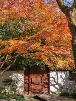 A large area of red maples, walking through the entrance feels like entering a quiet forest world