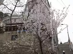 The alleys here are irregular and have many slopes. Although it was a bit breathless to walk, just as I was wiping the sweat off my face while climbing up, a super full cherry blossom tree appeared at the corner🌸! The sun shines through the flowers, it's as beautiful as a commercial, I couldn't help but scream with joy