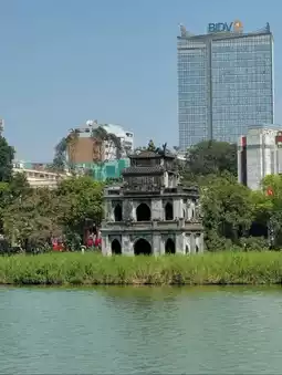 During the day, you can take a leisurely walk and see the small turtles in the lake. At night, the surrounding lights create a romantic atmosphere. On weekends, the area turns into a pedestrian street with many food stalls and street performances. There are also many cafes nearby where you can sit down and enjoy a cup of Vietnamese coffee, experiencing the slow pace of life in Hanoi.