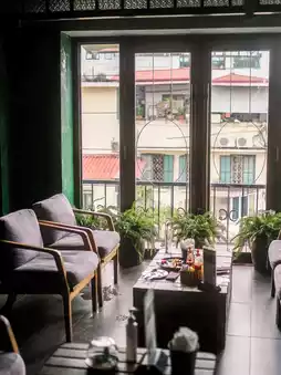 There is a view of the building on the square in the back and you can also see Hoan Kiem Lake from the balcony of the shop. The shop has many chill-out corners to choose from. Each corner is beautiful and has a different view.