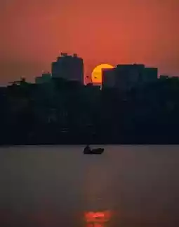 As night falls, Hoan Kiem Lake transforms. Lights along the shore cast a dreamy glow on the water, while boats glide by, their reflections painting golden trails like stars on the lake’s surface.