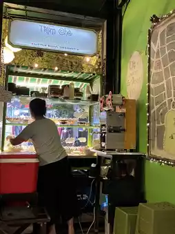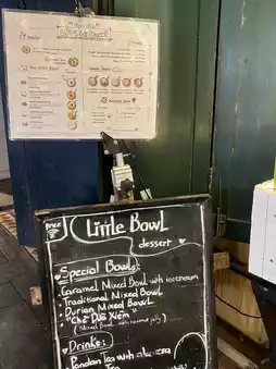 The gently sweet coconut milk is topped with beans, fruit, tapioca, and more, creating a jam of colors, ingredients, and textures. 🤭
