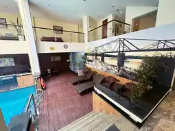 The first floor features a spa and swimming pool ๐๐, with lounge chairs nearby.