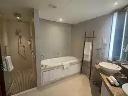 We booked this InterContinental Hotel three months in advance. Initially, we were debating between this one by Westlake and another high-rise InterContinental. Ultimately, we chose this one because of its unique overwater rooms by the lake. Although the location isn't the most convenient and requires navigating through a small road to get there, the experience from the lobby to the room via a shuttle feels like entering another world. The overwater rooms are truly amazing, each featuring a balcony where you can sit and enjoy the lake view (though it can get a bit hot, haha). In the evening, we visited the bar to enjoy the nighttime view of Westlake, ordering two beers, one juice, and a portion of fries for 650,000 VND. Considering it's a bar in a five-star hotel, the price is reasonable. Overall, the environment is great, the scenery is beautiful, and the staff are courteous. Highly recommended! 👍
