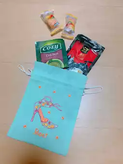 I packed them in adorable drawstring pouches to share with everyone ♡