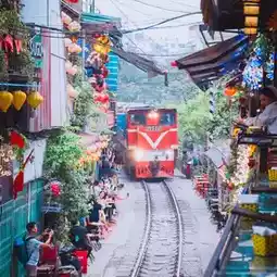 The unique scenery includes tightly packed buildings with railway tracks running between them🛤️. When a train🚃 passes through, it's a perfect photo opportunity📷✨.