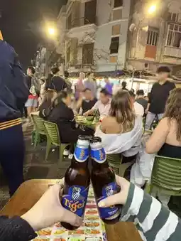 It's relatively quiet during the day, but in the evening, the entire street transforms into a festival-like atmosphere. Every shop sets up small tables and chairs outside, making it difficult to walk around, and the energy is high until late at night!