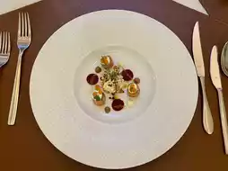 For dinner, we had a French Michelin restaurant. The smoked salmon, the Michelin-rated first course, was absolutely delicious, with layers of aroma and a perfectly salty flavor. The accompanying sauce was unique in every drop.
