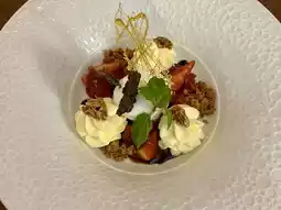 The dessert, yogurt cream and lemon sorbet, had a unique texture.
