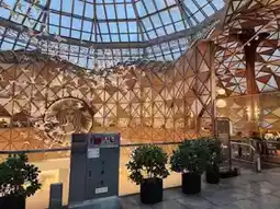 Step inside, and the magic continues. The vast interior features an impressive glass dome ceiling that allows natural light to flood in during the day, while in the evening, it glows warmly under the lights. Suspended above are hundreds of delicate bird ornaments, giving the surreal impression of being surrounded by a flock in mid-flight. It’s an atmosphere that feels both luxurious and whimsical, as if you’ve wandered into a fairytale café. 😍