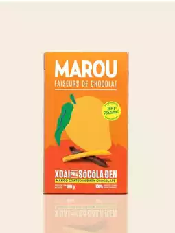 100% natural Vietnamese dried mangoes x Marou 65% dark chocolate: a crispy dark chocolate outer layer, a soft and chewy inner layer.