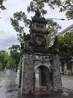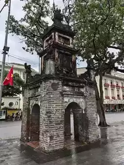 Turtle Tower stands on a small island in the middle of Hoan Kiem Lake as a commemorative pagoda. It honors the national hero Lê Lợi from Vietnamese history, who, as mentioned earlier, received a sword from the divine turtle in Hoan Kiem Lake, led the Lam Sơn uprising to defeat the Ming army, and established the Lê dynasty. Ten years later, Lê Lợi was boating on the lake again, encountered the golden turtle, returned the sword to it, and the sword was plunged into the lakebed, forming the present-day Turtle Tower.
