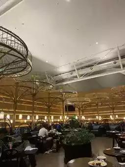 This lounge is spacious and stylishly decorated, but it's always crowded, both morning and evening. The overall atmosphere is inviting and comfortable. What impressed me most was the fully stocked alcohol station, offering nearly 20 wines, beers, and cocktails. It's like a mini-bar in an airport.