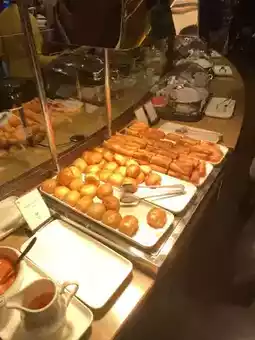 The lounge offers a wide variety of hot dishes, including rice porridge, fried rice, braised beef, stir-fried vegetables, pasta, steamed buns, sushi, and spring rolls. Desserts include three or four types of cake. We tried the carrot cheesecake, which was surprisingly delicious. We recommend ordering it with an iced coffee with salted caramel from the alcohol bar. The rich flavor complements the dessert perfectly.