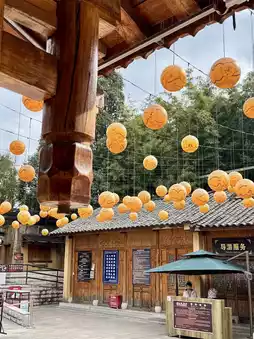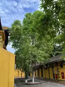 While the main building is closed to the public, visitors can stroll around the courtyard in front, encompassing "Mango Alley" and the wooden houses within the compound.
