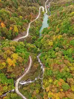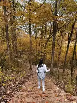 Oil painting forest, colorful forest trail — hidden in the Micang Ancient Road between Sichuan and Shaanxi, few people and beautiful scenery, the stunning photos that go viral on social media are born here! Sunlight filters through the colorful leaves onto the stone steps, every step feels like stepping on golden fragments.