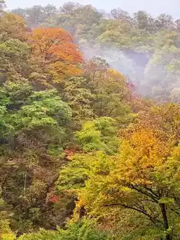 Strolling on the 3.5-kilometer skywalk feels like walking among clouds and colorful forests. The skywalk stretches across cliffs at an altitude of 2200 meters. Looking around, red, orange, yellow, and green colors intertwine like a colorful ink painting. On good weather days, this is also the best spot to watch the sunset~