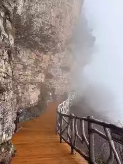 ☁️The best viewing period is from October to November, especially after rain when the sea of clouds is most likely to appear. Standing on the Longtou Cloud Walkway spanning the cliff, overlooking the colorful valley below feels like walking in the clouds.