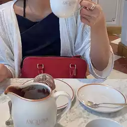 The hot chocolate came in a pot with enough for two cups and plenty of fresh cream 🫖