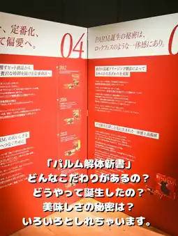This exhibition lets you enjoy the history of PARM, loved by so many, using all five senses.