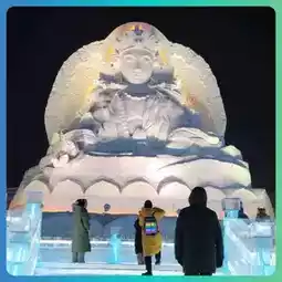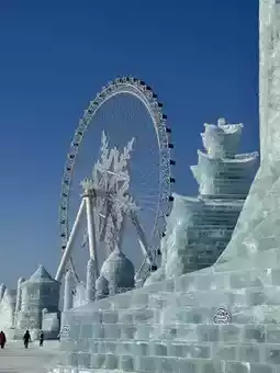 At the Ice and Snow World, it was like a dreamlike ice and snow kingdom. Huge ice castles stood in front of me, like castles in a fairy tale world. I excitedly shuttled among them, looking at the colorful lights around me, as if I were in a mysterious ice and snow world. I rode a snowmobile, the wind whistling in my ears, and the thrill made me scream.
