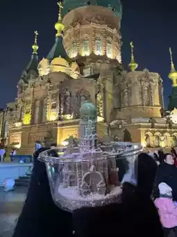 On Central Street, the road was paved with stones, and the European-style buildings on either side were staggered. The sun shone on the road, reflecting a warm light. I strolled along, feeling the blend of history and modernity. There were many ice sculptures on the street, crystal clear and shimmering in the sunlight. This was a feature of Harbin and my first impression of the city.