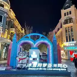 - Shopping street in the center of Harbin, both sides of the road are full of shops, very lively people