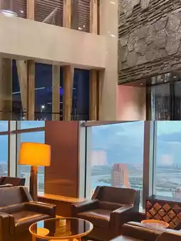 The hotel lobby is tall and spacious, with a unique decoration style that combines natural and modern elements, which is eye-catching.