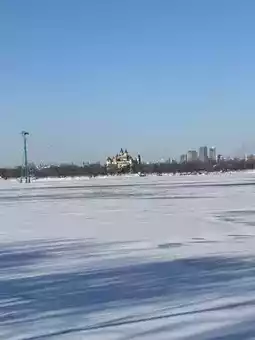 - The frozen river in winter is a good place for winter recreation, with ice skating and snow scenery.