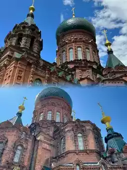 - Afternoon: Stroll slowly along Central Street, where the cobblestone pavement is worn smooth by footsteps, and the Russian-style buildings paired with summer greenery create a foreign atmosphere in every snapshot. At the end of the street is the Flood Control Monument, next to Stalin Park where you can see the leisurely life by the Songhua River—people playing chess under trees, others gazing at the flowing water. Not far away is Saint Sophia Cathedral; although the interior is temporarily closed, its white walls and golden domes shine brightly under the blue sky. Sitting on a bench in the square watching pigeons circle is also very pleasant.
