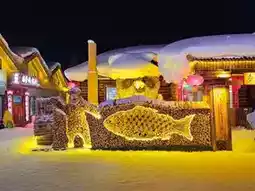 Our Harbin adventure began with a scenic drive to Yabuli Snow Town, about three hours from the city. The road was lined with snow-covered trees, giving off serious “winter wonderland” vibes. Once we arrived, the entire town felt like a postcard — traditional wooden houses blanketed in soft, powdery snow, chimneys smoking gently into the freezing air.