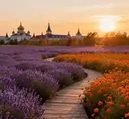 1️⃣ In front of Petrov Art Palace — a hundred acres of blooming zinnias, red and pink intertwined like a carpet, with a Russian-style castle as the backdrop, instantly turning you into a fairy tale heroine!