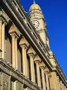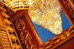 Recommended shooting time: 3 PM to 5 PM. The sunset light passes through the arched windows, casting mottled shadows on the gilded handrails. Recommended spots: