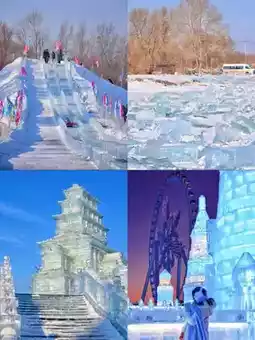 Remember to take snowy photos in front of Western-style buildings, check in at the giant ice sculpture slide, and shoot dreamy photos at the ice sculpture park! Every shot is wallpaper-worthy beauty💖