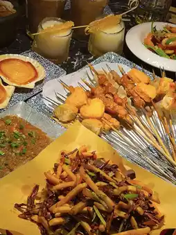 Grilled cockles, pork cartilage, beef tripe, shrimp-stuffed youtiao