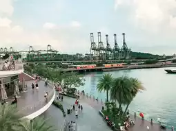 Strolling from HarbourFront Promenade to Sentosa via the HarbourFront Boardwalk offers stunning contrasts—on one side, the bustling port with towering cranes and massive cargo ships; on the other, the resort island’s tropical allure. As the city fades behind, the shimmering sea and approaching Sentosa skyline create an unforgettable scene. A walk bridging two worlds!