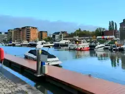 Kanaalkom Te Hasselt is a tributary of the Albertkanaal Canal that runs through Hasselt. This section of Kanaalkom Te Hasselt was developed by a project called Quartier Bleu into a public space called "Blue Boulevard," featuring a marina and a dining, drinking, and shopping area. The canalside atmosphere is captivating. A shopping mall, Quartier Bleu, and a large, convenient underground parking lot are located on the canal. Therefore, the area is often referred to as Quartier Bleu or Blue Boulevard instead of the canal itself.