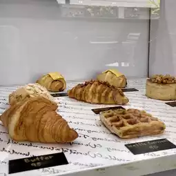 The shop has a good atmosphere, decorated in a minimalist style, clean white, airy, suitable for chilling out with friends or working. There is a parking lot in front of the shop in the alley, very convenient. ☕️ Strong coffee, fragrant, just the right amount of sweetness. 🥐 Caramel Macadamia Croissant, caramel filling, warmed up, crispy on the outside, soft on the inside, delicious.