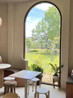 The vibe? Minimalist and calming—rattan chairs, soft lighting, and lots of greenery. Perfect for chilling or shooting content (your camera roll will thank you).