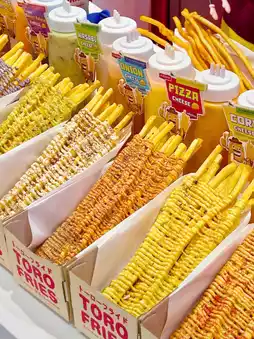 Imagine thick-cut fries, perfectly crispy on the outside and fluffy on the inside — then topped with bold, savory seasonings and a drizzle of flavorful sauces. That’s what TORO FRIES delivers! This trendy snack booth has quickly gained a cult following among locals and tourists alike for one reason: they turn humble fries into a full-blown flavor experience.