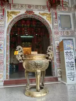 The building has a special feature: it is decorated with Thai, Chinese and Tibetan art. The beautiful tile patterns are unique.