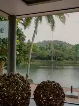 A super chill cafe in the middle of the forest with a reservoir view 🌴🍃