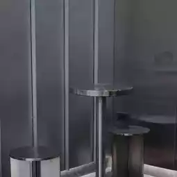 • There’s both natural light + small trees contrasting with the stainless steel counter, which is great. 🍃