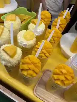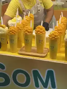 Hello everyone, today I will take everyone to review a sincere smoothie from "Som Muang" shop. This is a fresh fruit smoothie shop that has a signature of fresh fruits such as mango, mango smoothie, yogurt smoothie, yogurt cake, sticky rice with mango at an affordable price. The smoothies are very delicious. I recommend that when you come to Central Festival Hat Yai, you must try Som Muang Smoothie Shop. It's very delicious. 🍊🥭